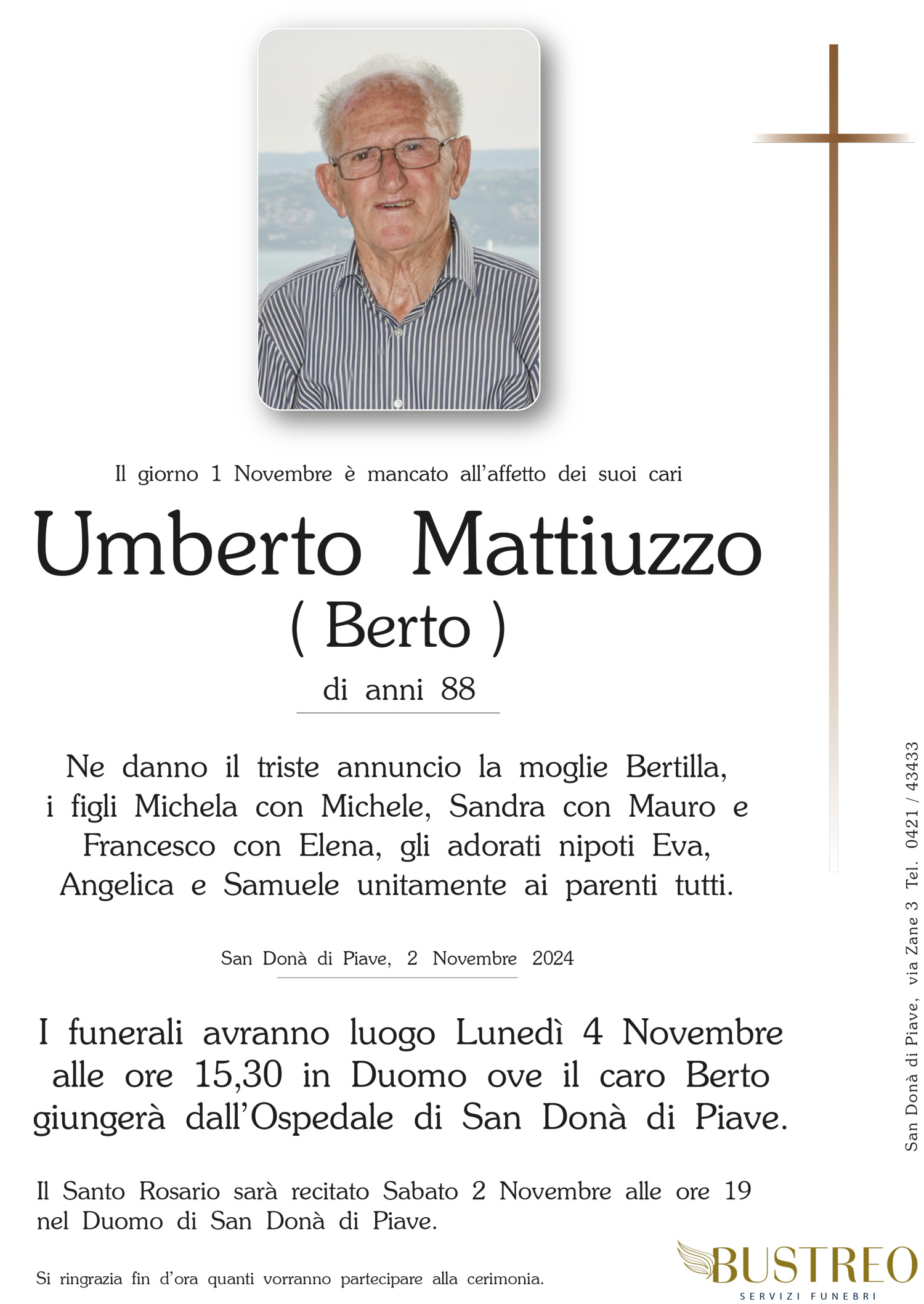 Possa il vostro dolore trovare conforto nel sostegno del Signore e nella certezza che vostro padre è sempre vicino a voi. Il calore della nostra amicizia riscaldi i vostri cuori.