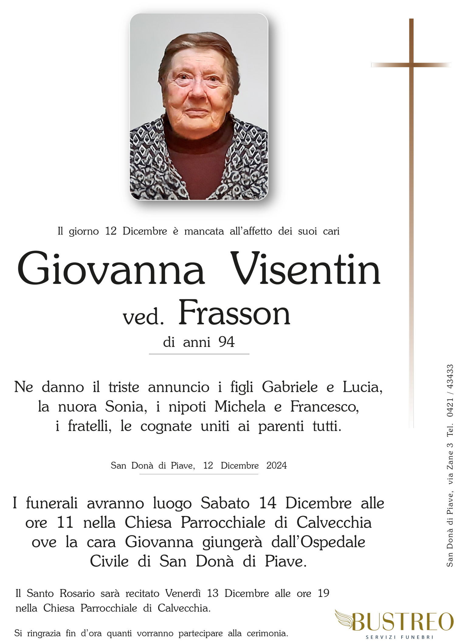 Con il nostro più sincero affetto speriamo di sostenervi e accompagnarvi in questo triste momento. Sentite condoglianze.