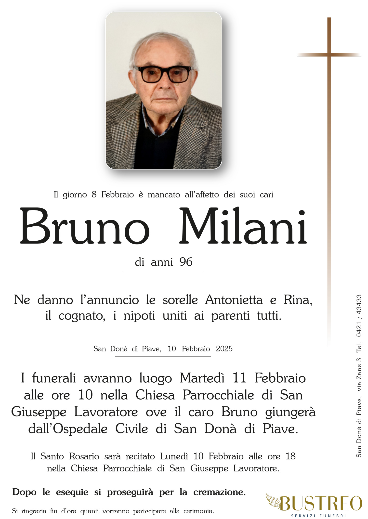 Possa il vostro dolore trovare conforto nel sostegno del Signore e nella certezza che vostro padre è sempre vicino a voi. Il calore della nostra amicizia riscaldi i vostri cuori.